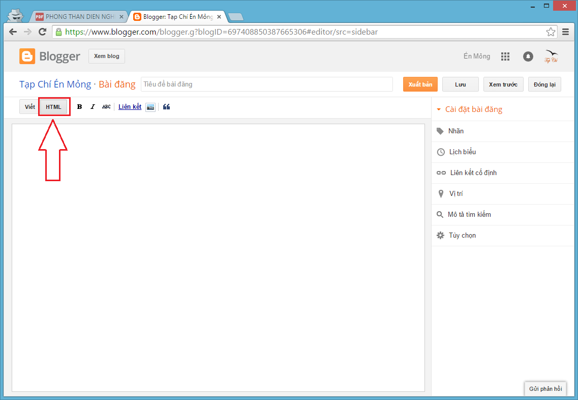 Trong lúc soạn thảo bài viết trong website, các bạn nhớ chuyển về dạng nhập liệu là HTML. Sau đó paste toàn bộ code bên trên sau khi đã thay thế dãy mã số file và chỉnh các kích thước. Tiếp tục viết tiếp bài đăng của bạn cho thật hoàn thiện nhé.